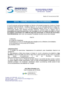 Assembleia Nacional Extraordinária dia 09 de Outubro de 2025, às 13h30